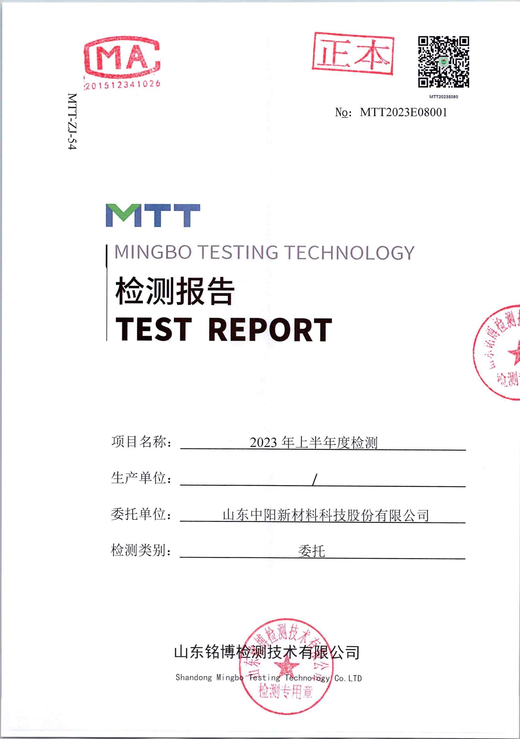 山東中陽(yáng)新材料科技股份有限公司半年度檢測(cè)